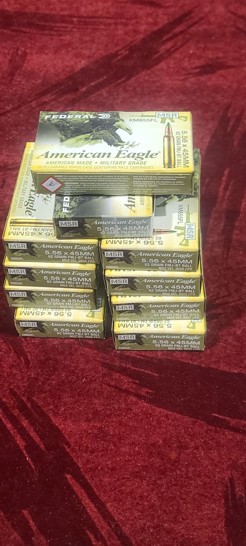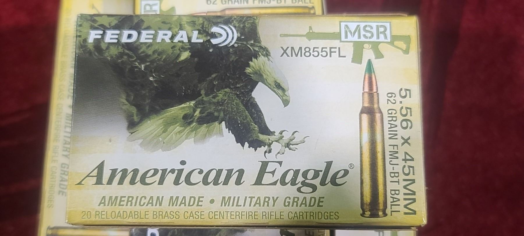 200 ROUNDS OF 5.56 X 45MM 62GR FMJ BT BALL BY FEDERAL/AMERICAN EAGLE