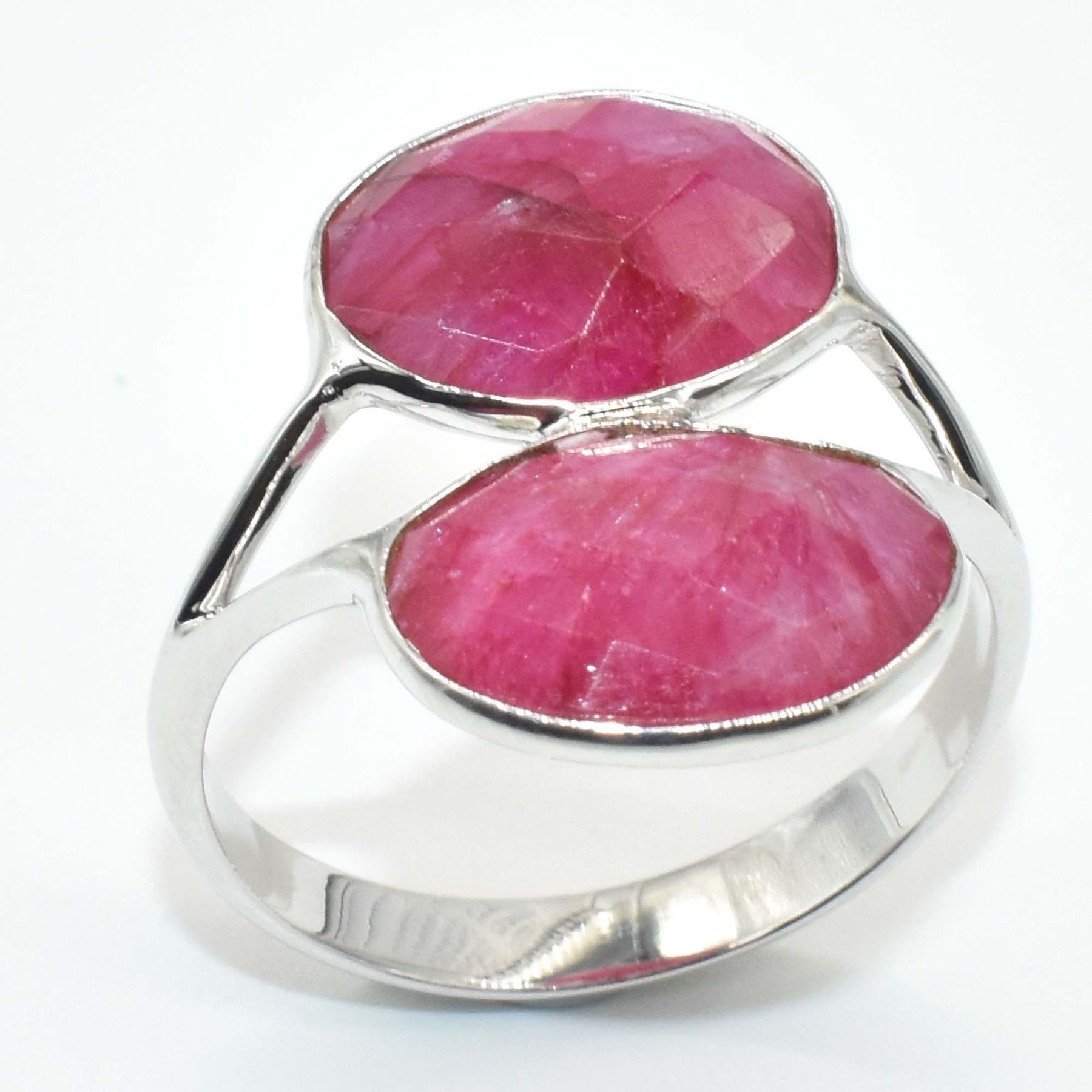 Silver Dyed Ruby(11.7ct) Rhodium Plated Ring (~weight 5.1g), Suggested Retail Value $200 (Estimated Selling Price from $39 to $78)