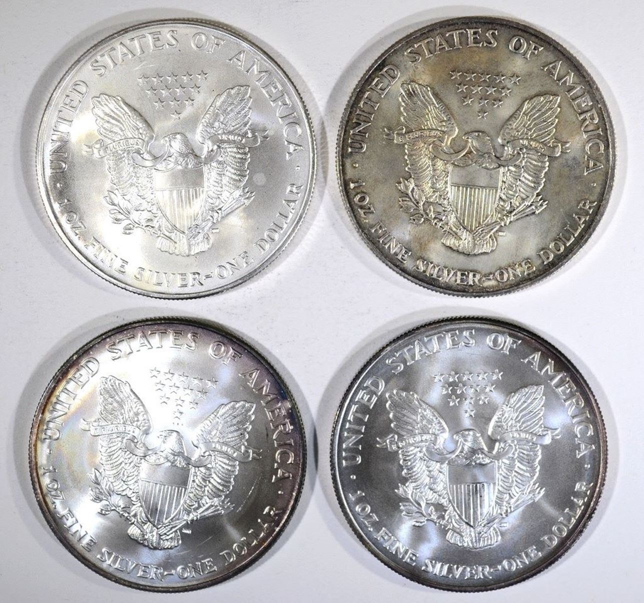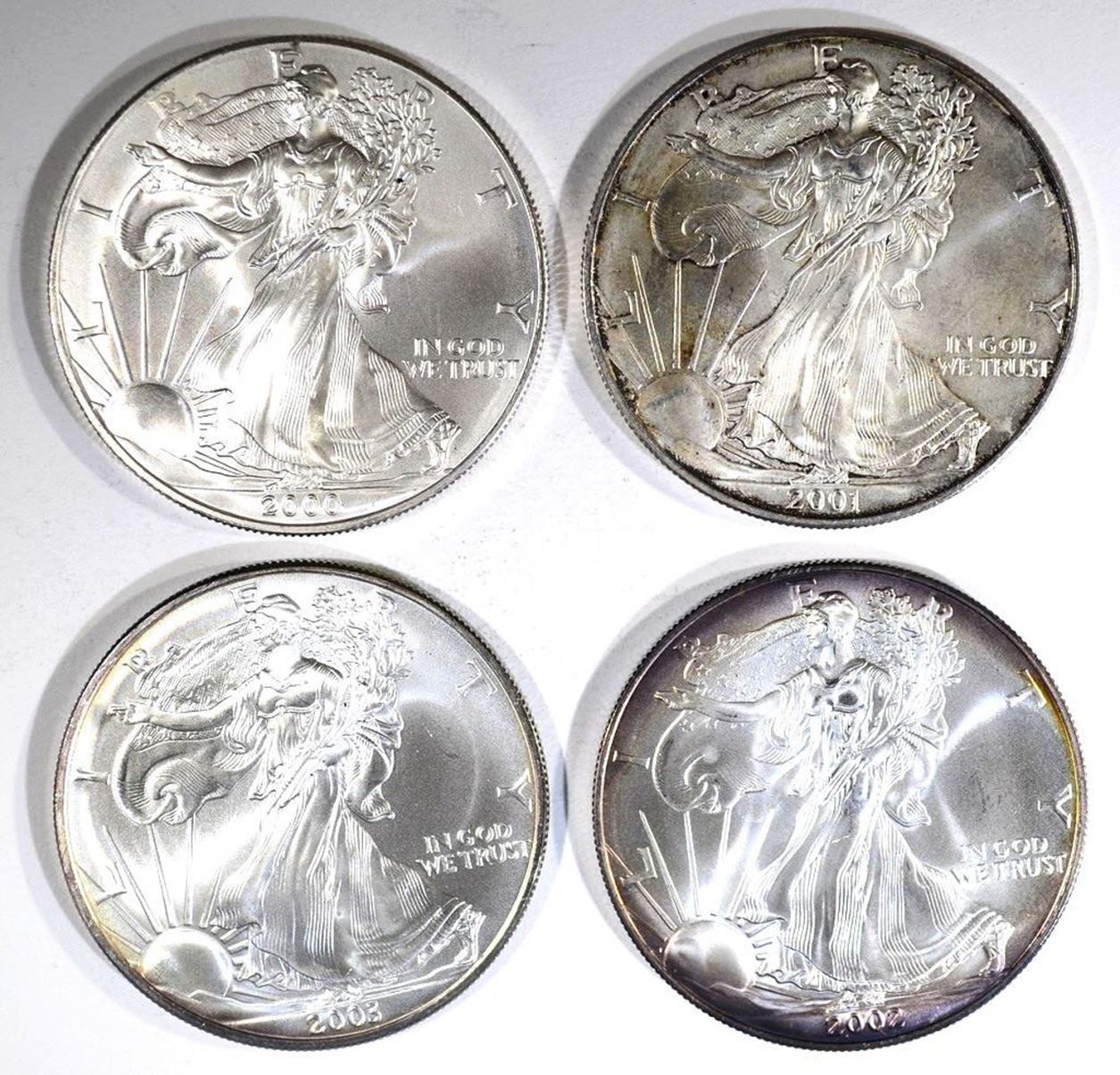2000, 01, 02 & 03 BU AMERICAN SILVER EAGLES
