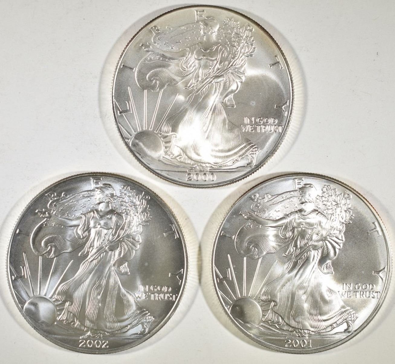 2000, 01 & 02 BU AMERICAN SILVER EAGLES