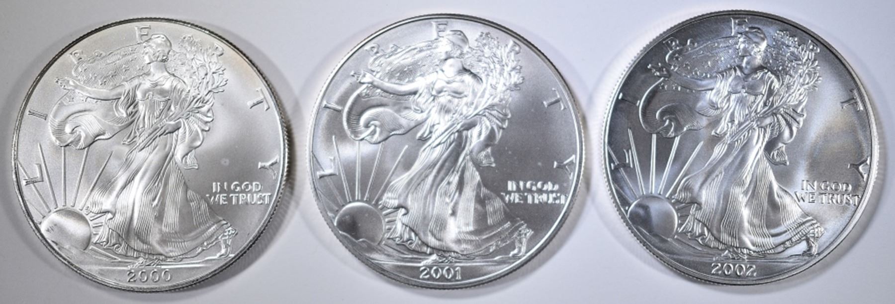 2000, 01 & 02 BU AMERICAN SILVER EAGLES