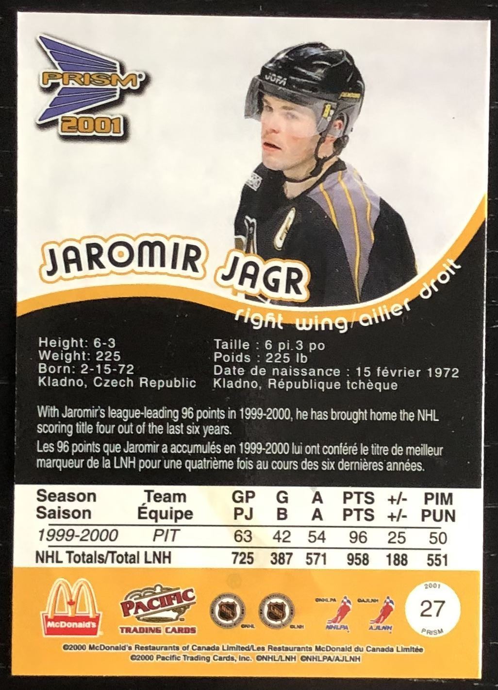 McDonald's card #27 NHL, hockey, hall of fame, regional