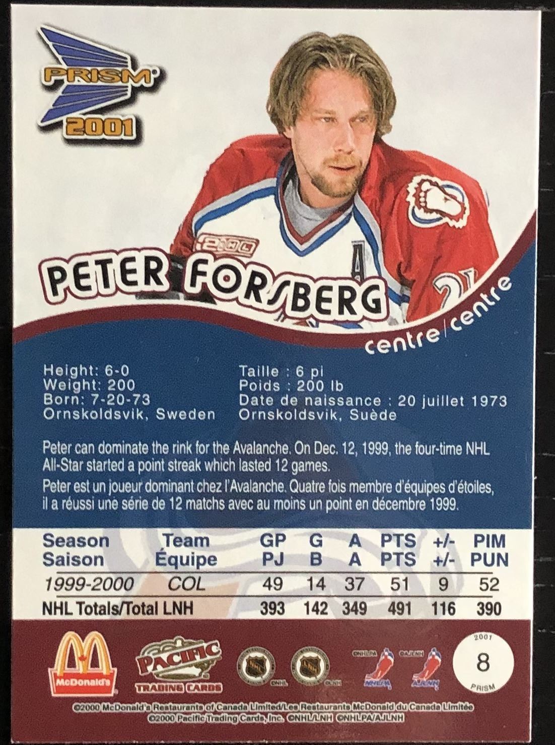 McDonald's card #8 NHL, hockey, hall of fame, regional