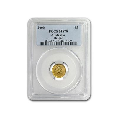 2000 1/20 oz Gold Year of the Dragon Lunar Coin (S1) PC **|**|** 2000 1/20 oz Gold Year of the Dragon Lunar Coin (S1) PCGS MS-70 ; MSRP: $385