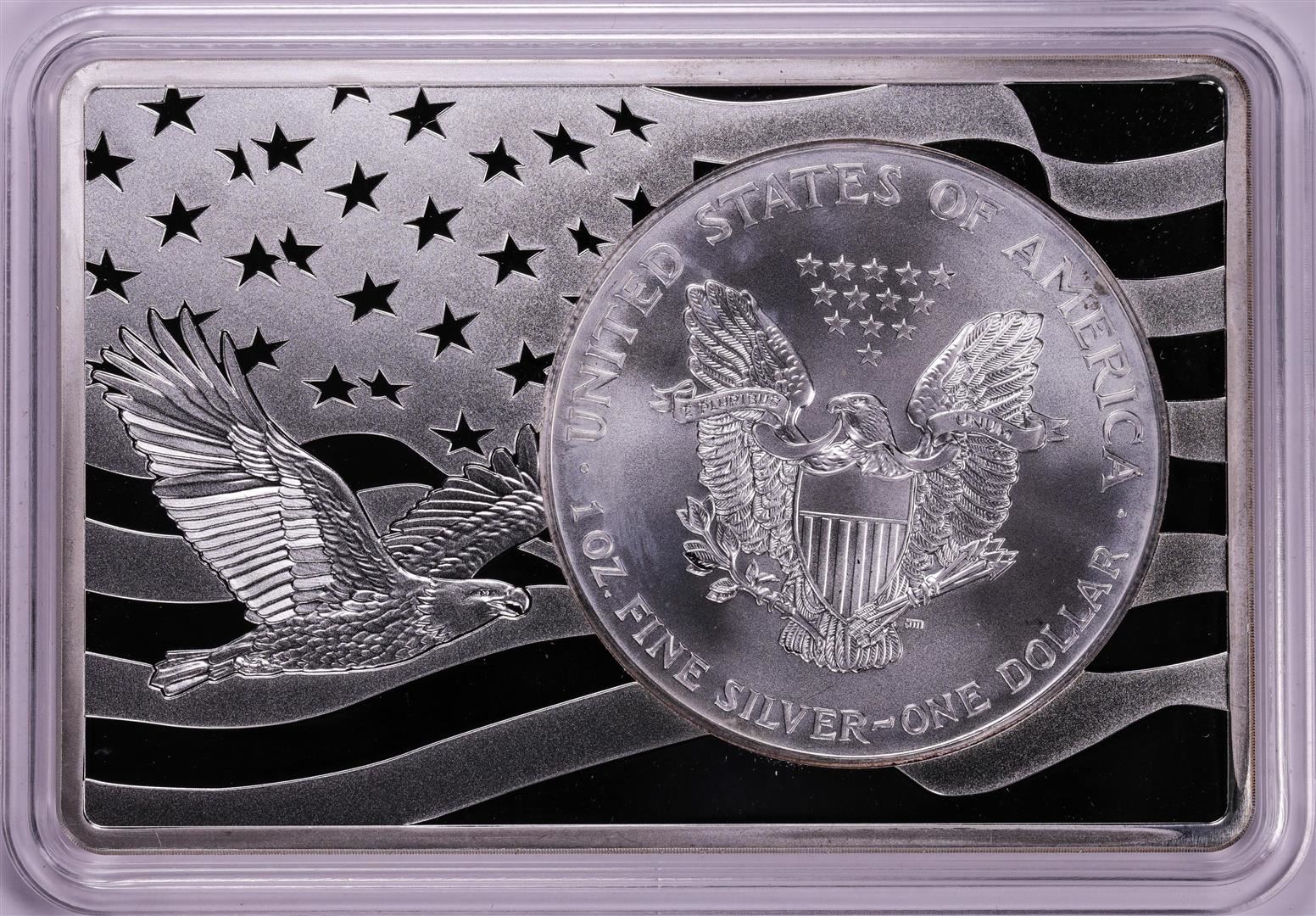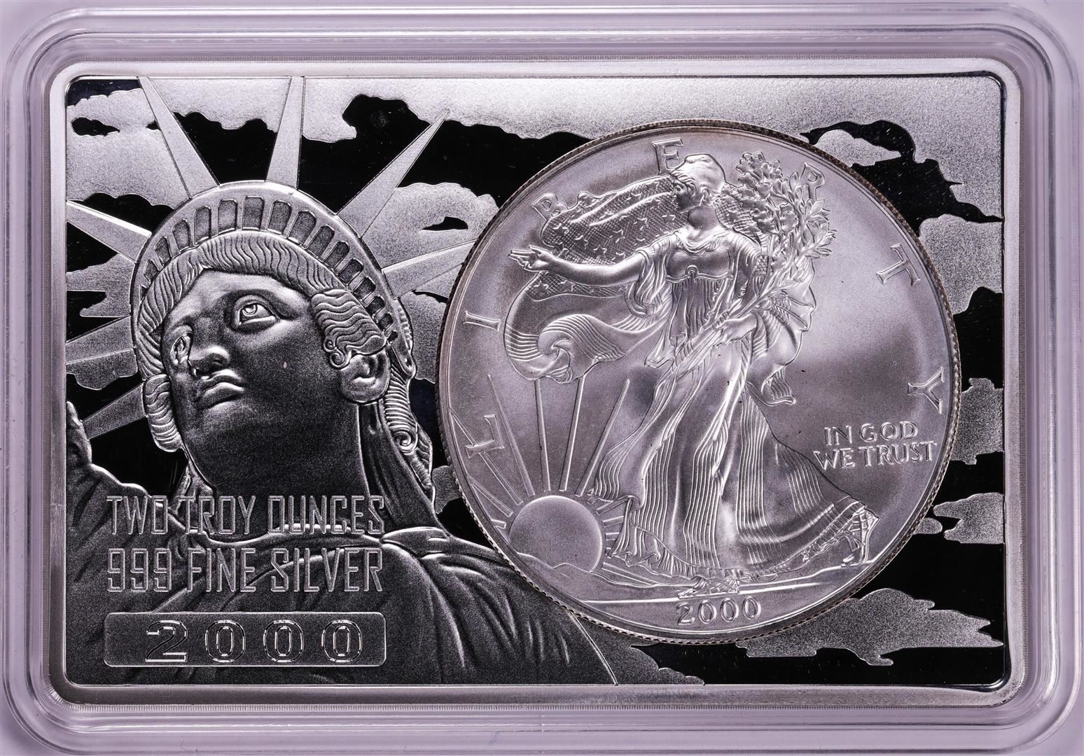 One 2000 $1 American Silver Eagle Coin & 2oz Silver Bar Set.