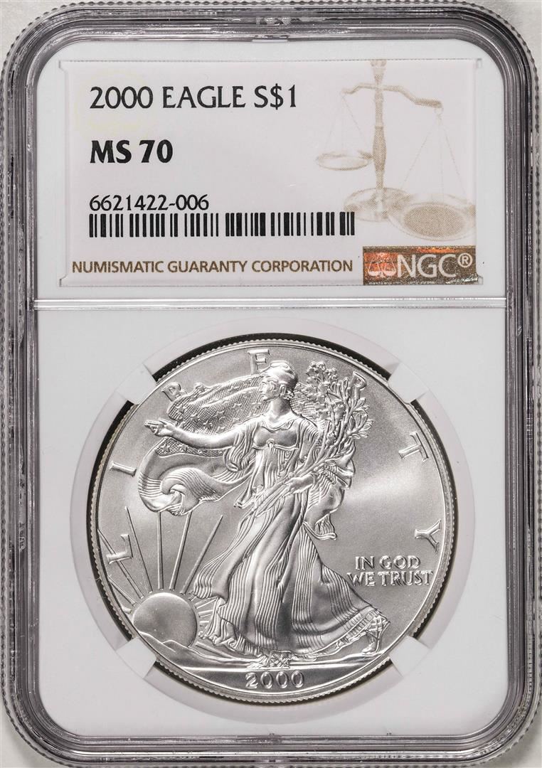 One 2000 $1 American Silver Eagle Coin NGC MS70. NGC Certified.