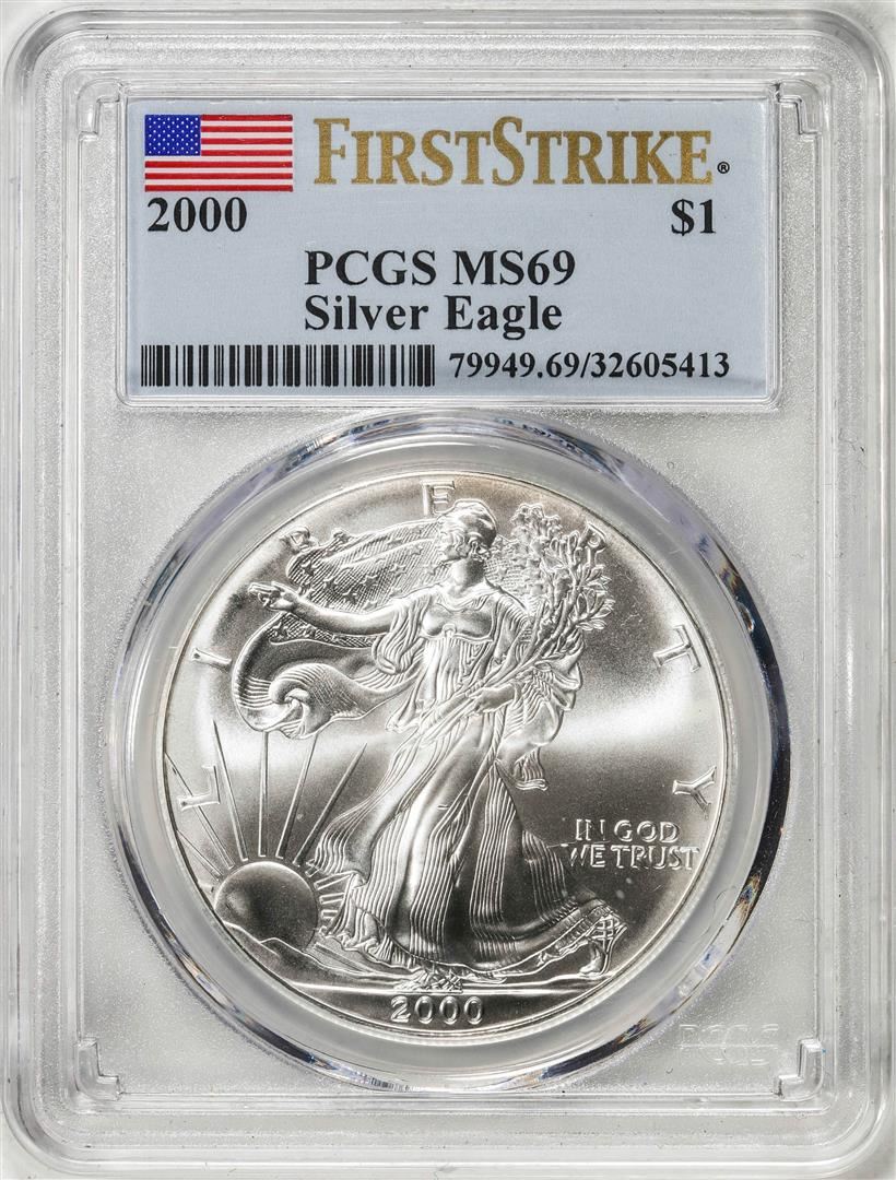 One 2000 $1 American Silver Eagle Coin PCGS MS69 First Strike. PCGS Graded.