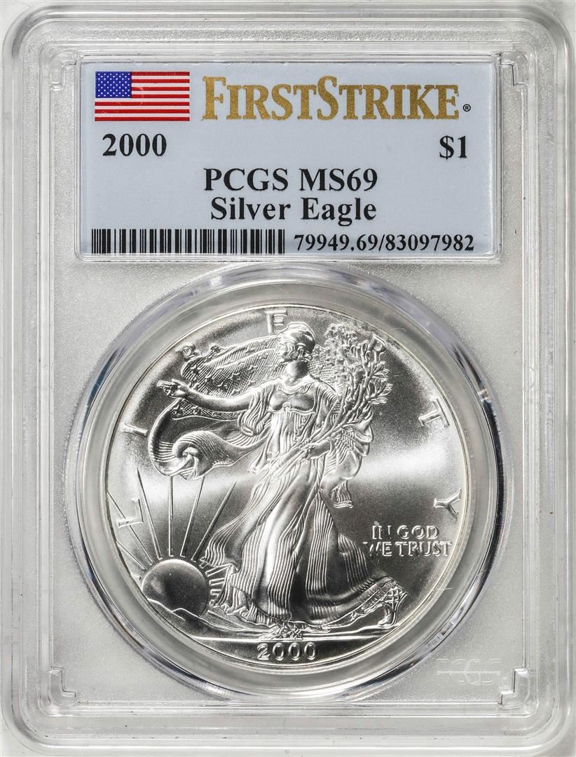 One 2000 $1 American Silver Eagle Coin PCGS MS69 First Strike. PCGS Graded.