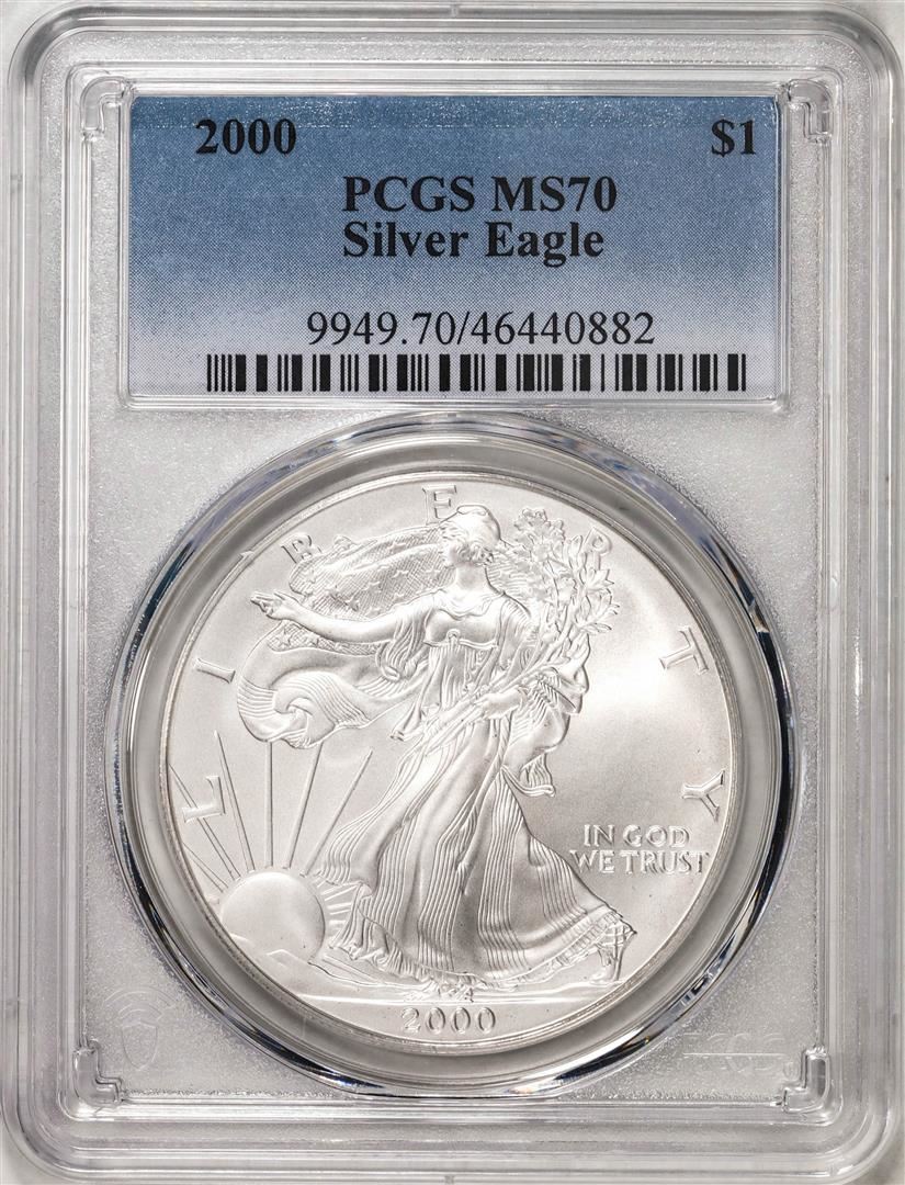 One 2000 $1 American Silver Eagle Coin PCGS MS70. PCGS Graded.
