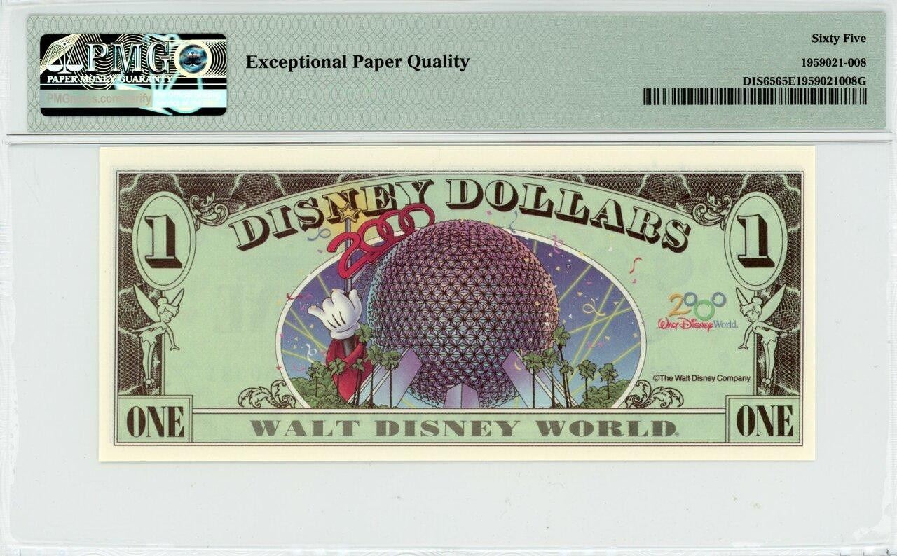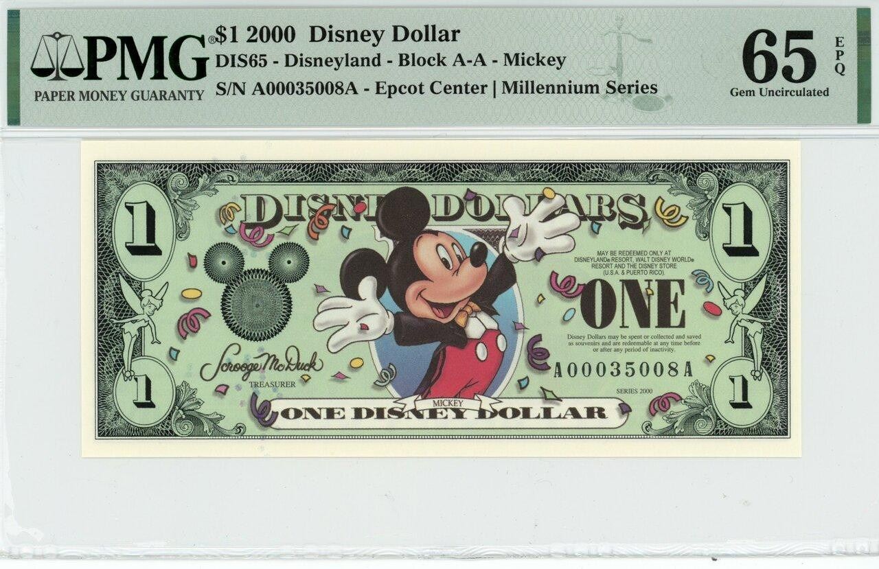 One 2000 $1 Mickey Disney Dollar PMG 65EPQ.