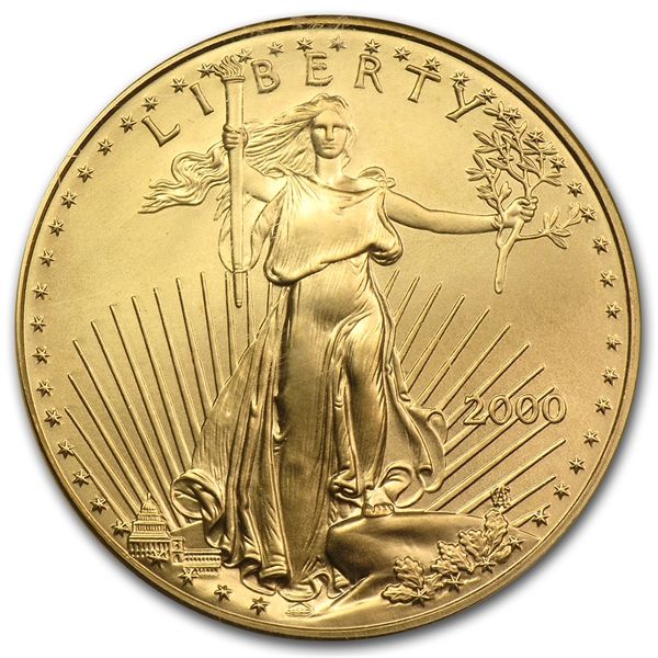2000 1 oz Gold American Eagle MS-69 NGC **|**|** 2000 1 oz Gold American Eagle MS-69 NGCYear ***2000Grade***MS-69Denomination**50Dim.**32.7Thick:**2.87mm ; MSRP: $7700