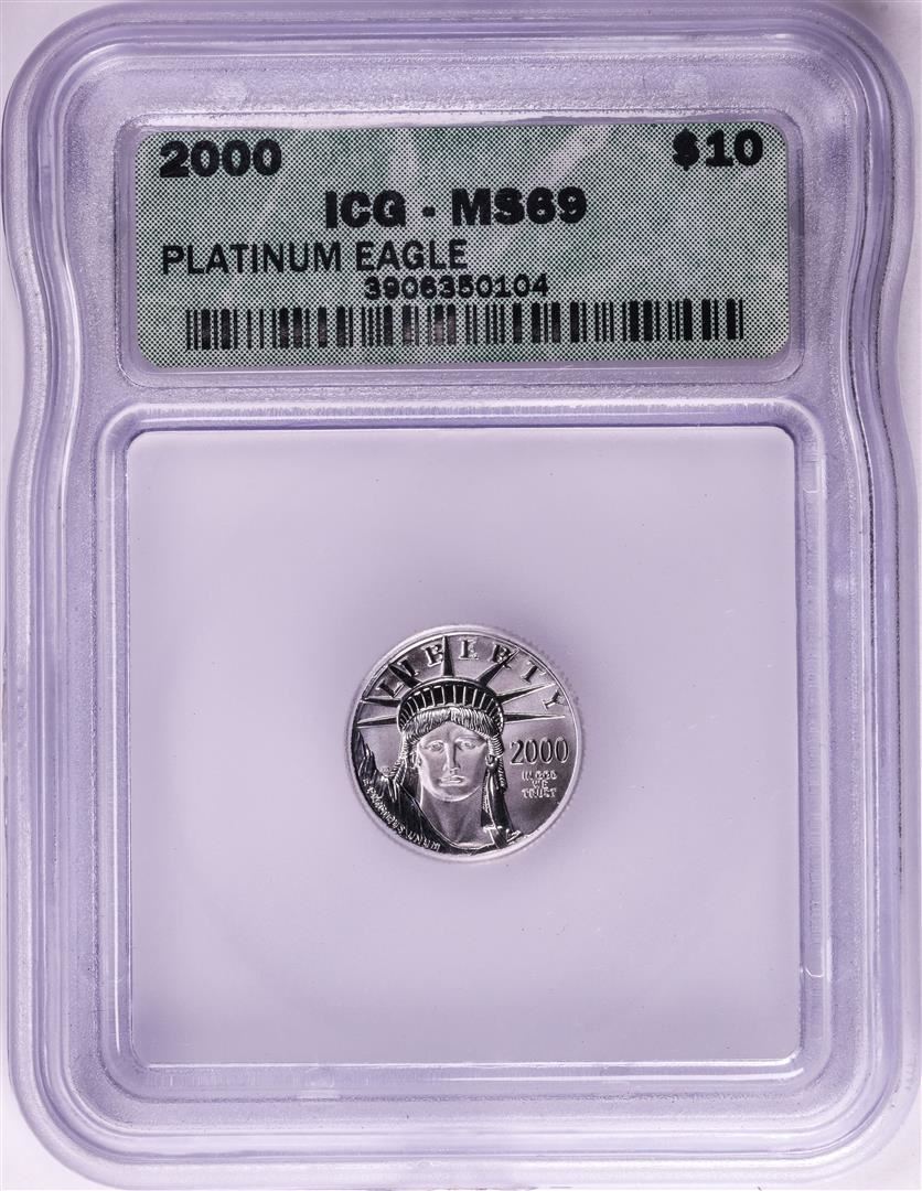One 2000 $10 American Platinum Eagle Coin ICG MS69. ICG Certified.
