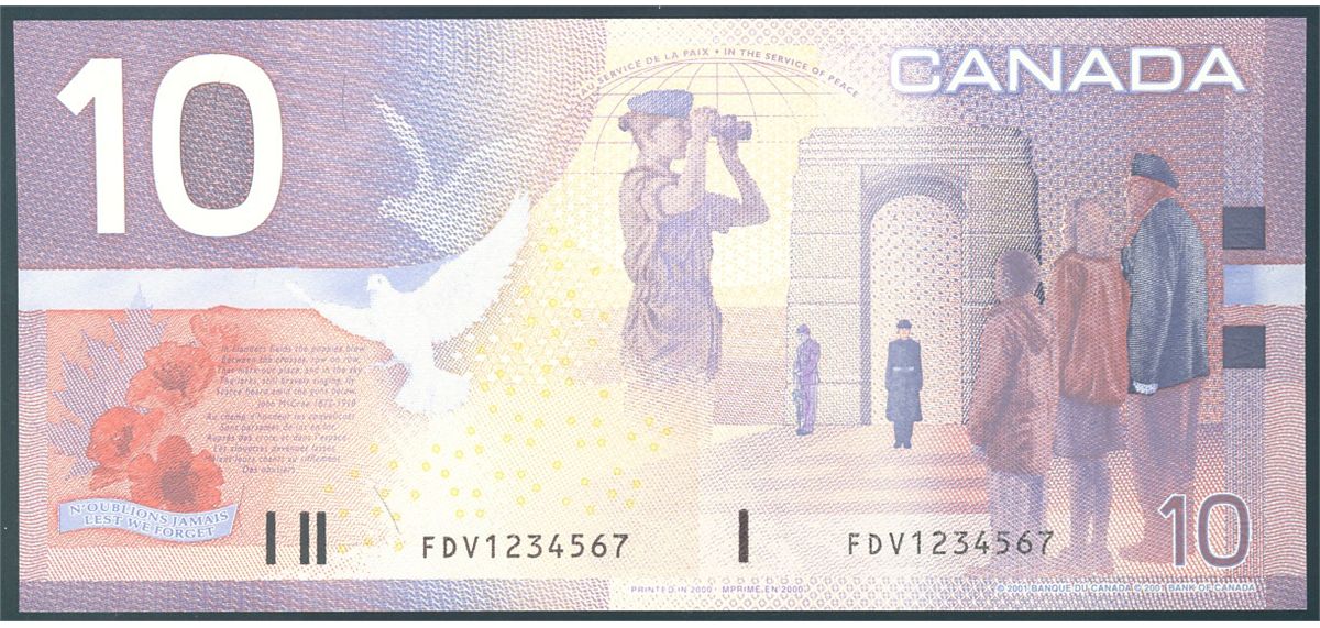2000 $10 BC-63a #FDV1234567 PMG UNC66EPQ. Ascending Ladder S/N.
