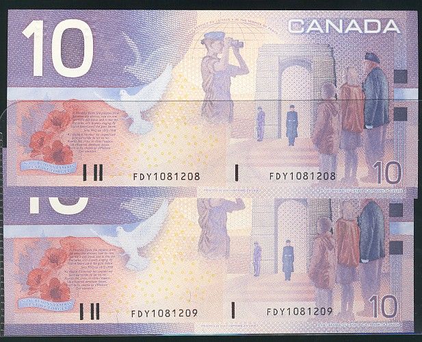 2000 $10 BC-63a #FDY1081208/209 Crisp UNC. Lot of 2 notes.