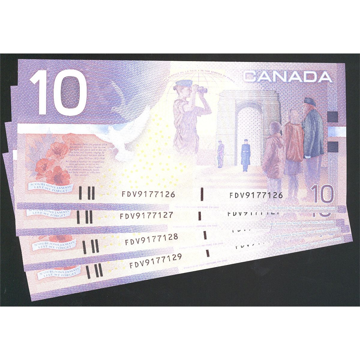 2000 $10 BC-63aA Sheet Replacement Notes #FDV9177126-129. Lot of 4 Crisp UNC notes.