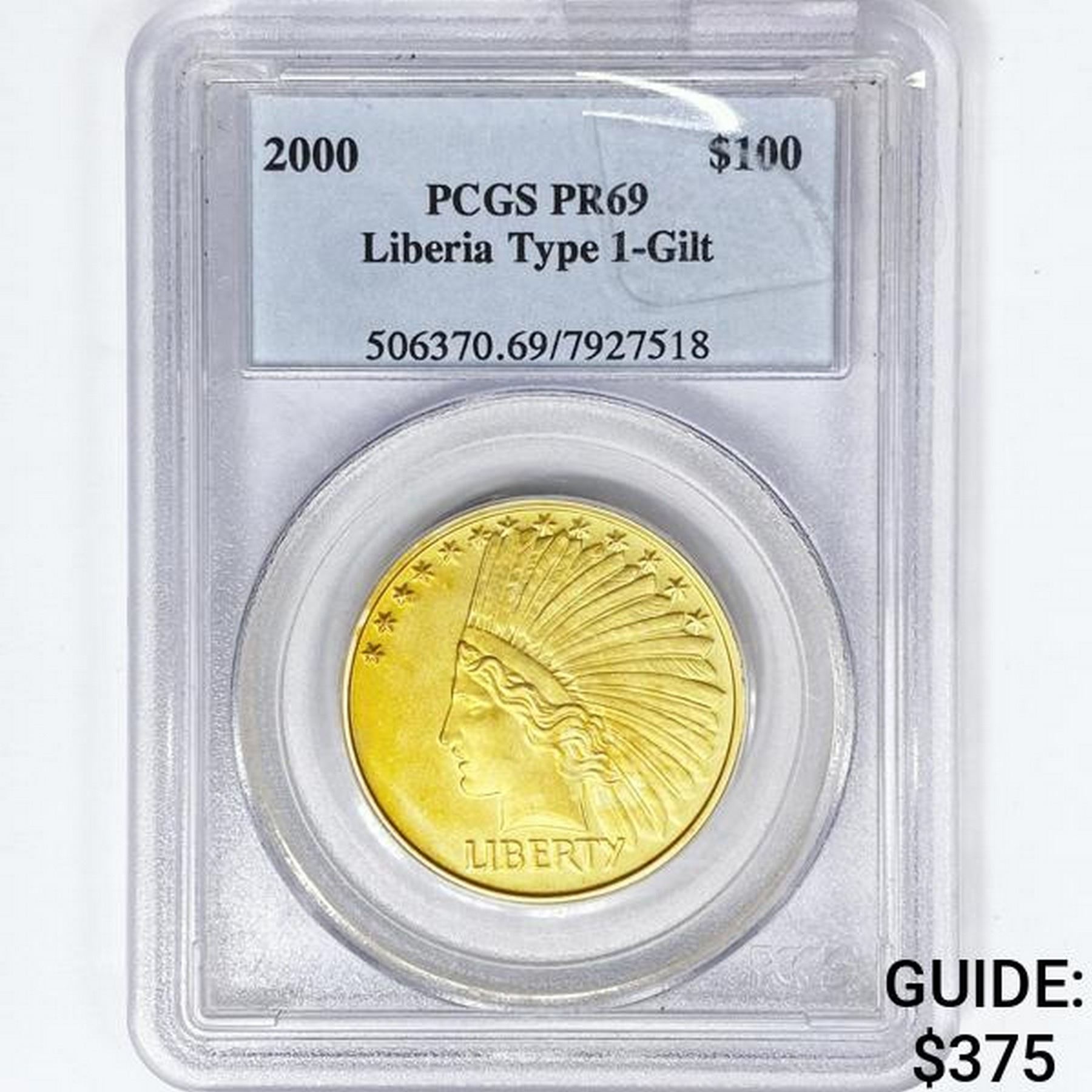 2000 $100 Liberia Type-1 Gilt PCGS PR69