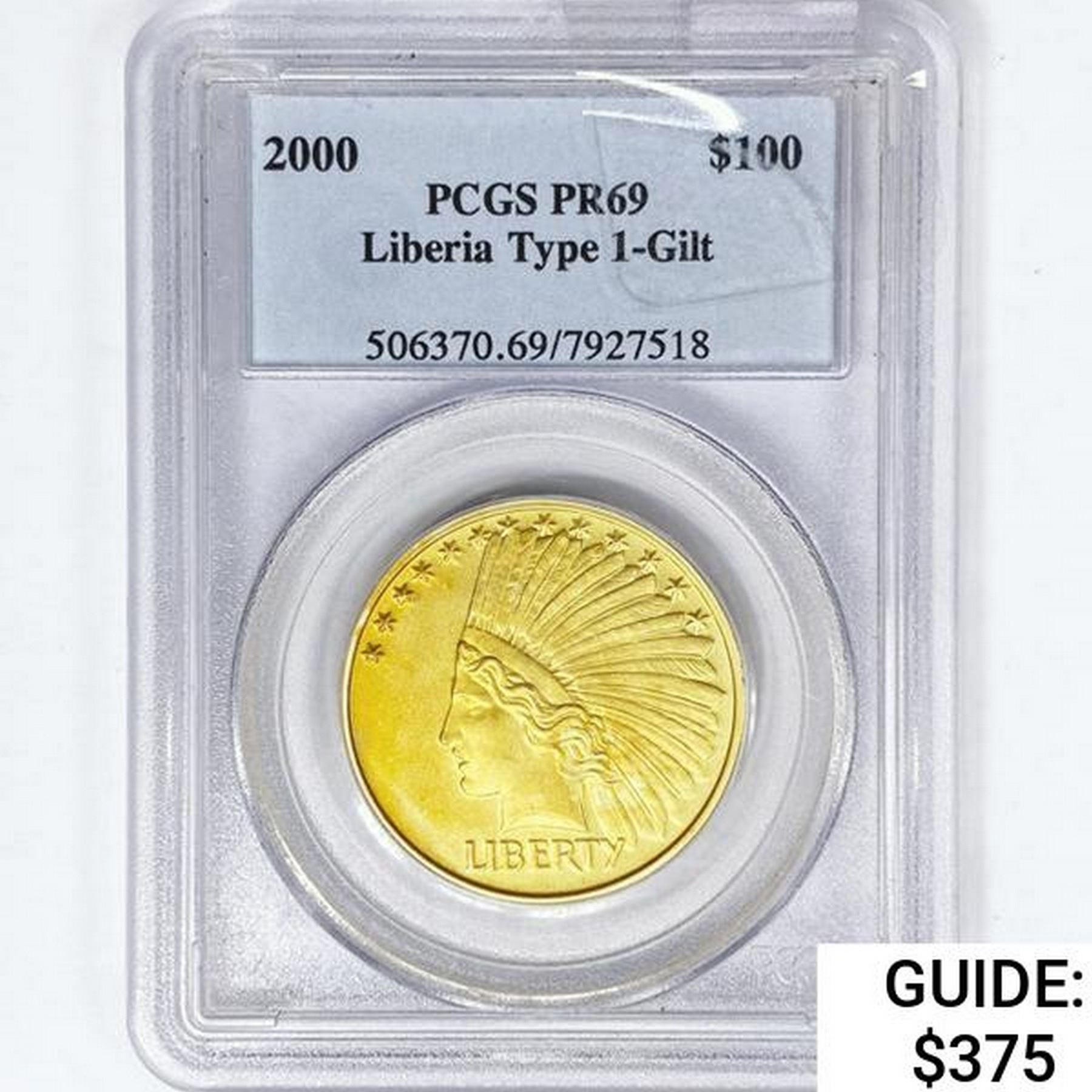 2000 $100 Liberia Type-1 Gilt PCGS PR69