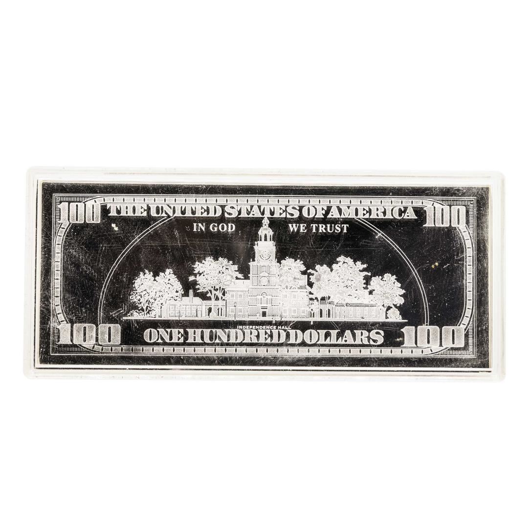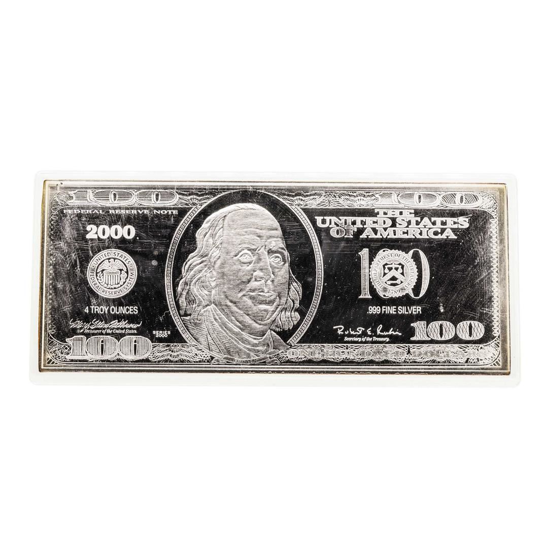 One 2000 $100 Washington Mint 4 oz. .999 Fine Silver Bar w/ Box COA.