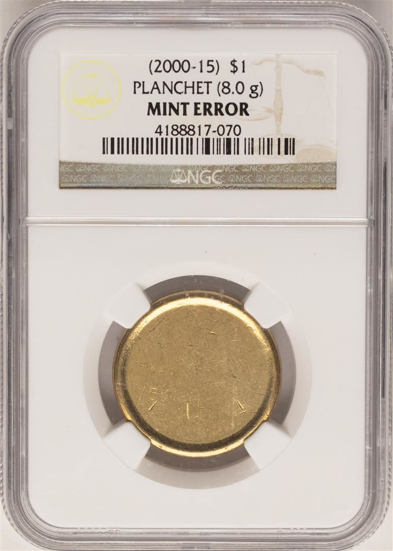 One 2000-15 $1 Blank Planchet Sacagawea Dollar Coin NGC Mint Error. NGC Certified.