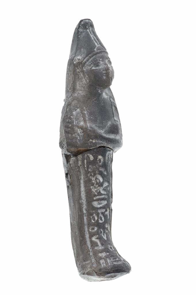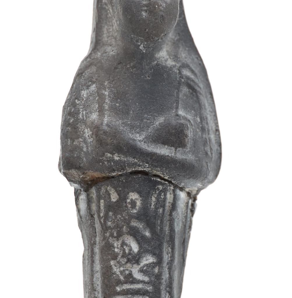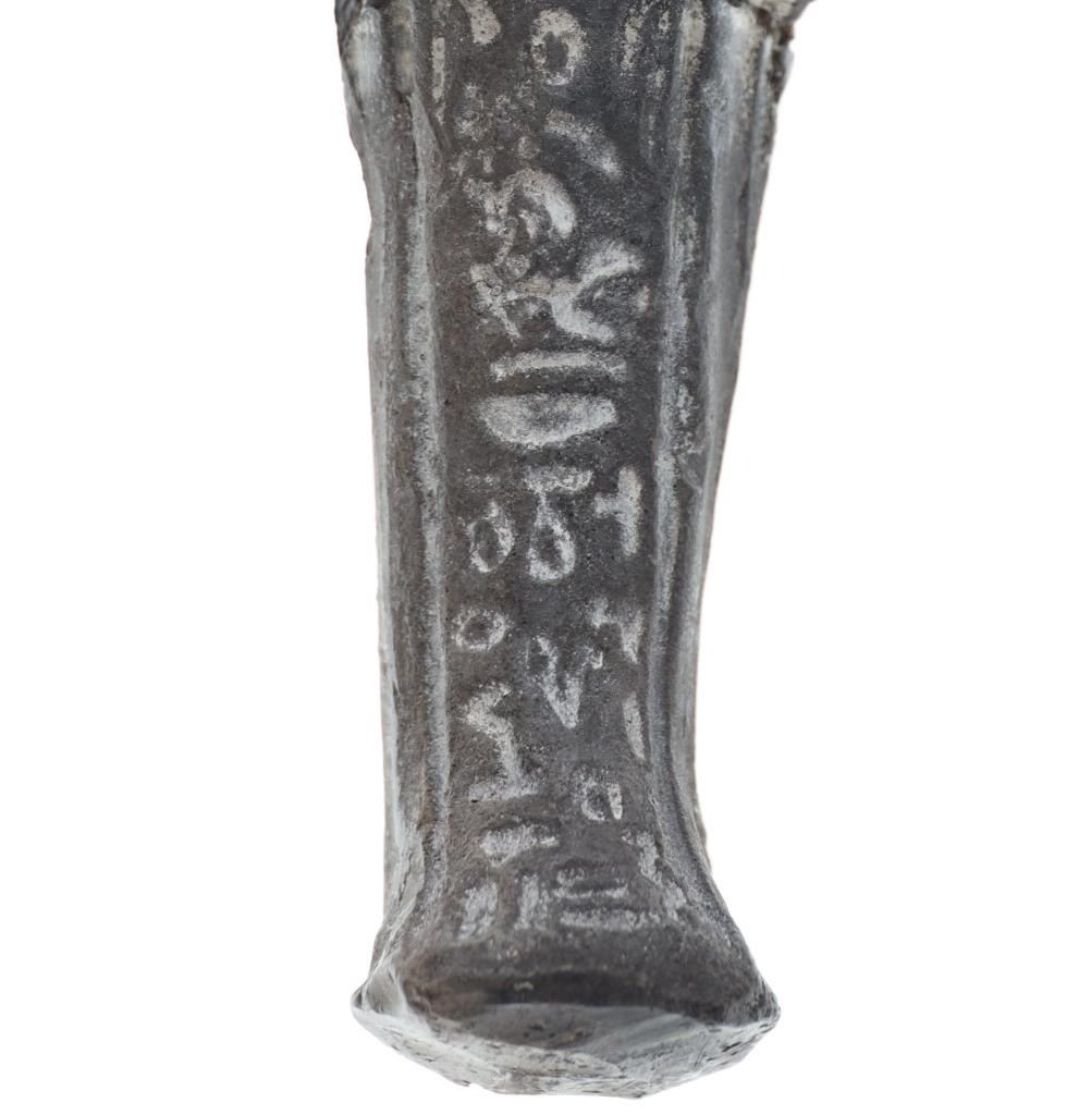 Featured in this lot is this 2000-1750 BCE hand carved stone Egyptian Shabti figurine. Shabti are small figures of adult male or female form, or figures, to carry out heavy manual tasks in the afterlife on behalf of a person they were buried with. The Shabti shows hieroglyphics on its legs. The Shabti figure was broken at one point but has since been repaired. The figure shows good condition overall with no other signs of damage. The Shabti measures 6 3/4" L x 1 7/8" W.