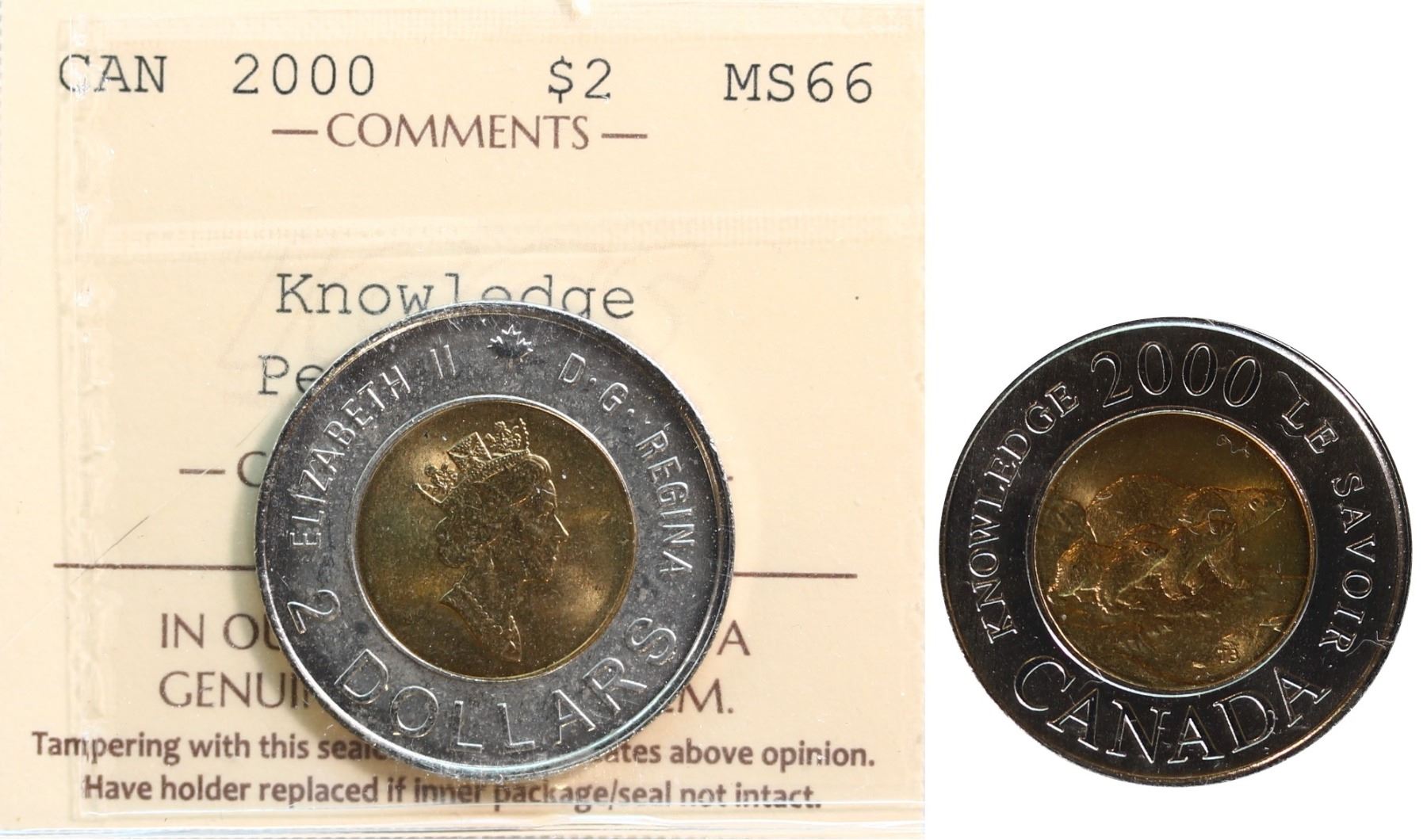 2000 $2 "Knowledge - Pedestal S" ICCS Superb Gem Mint State-66. Scarce this nice