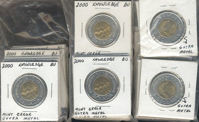 2000 $2 Knowledge Varieties. Lot of approx 35 pcs all Mint errors with extra metal. BU.