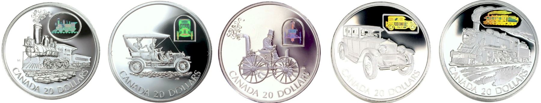 2000 $20 The H.S. Taylor Stream Buggy, 2001 $20 Russell Model L. Touring Car, 2001 $20 The Scotia, 2002 $20 The D10 Locomotive,