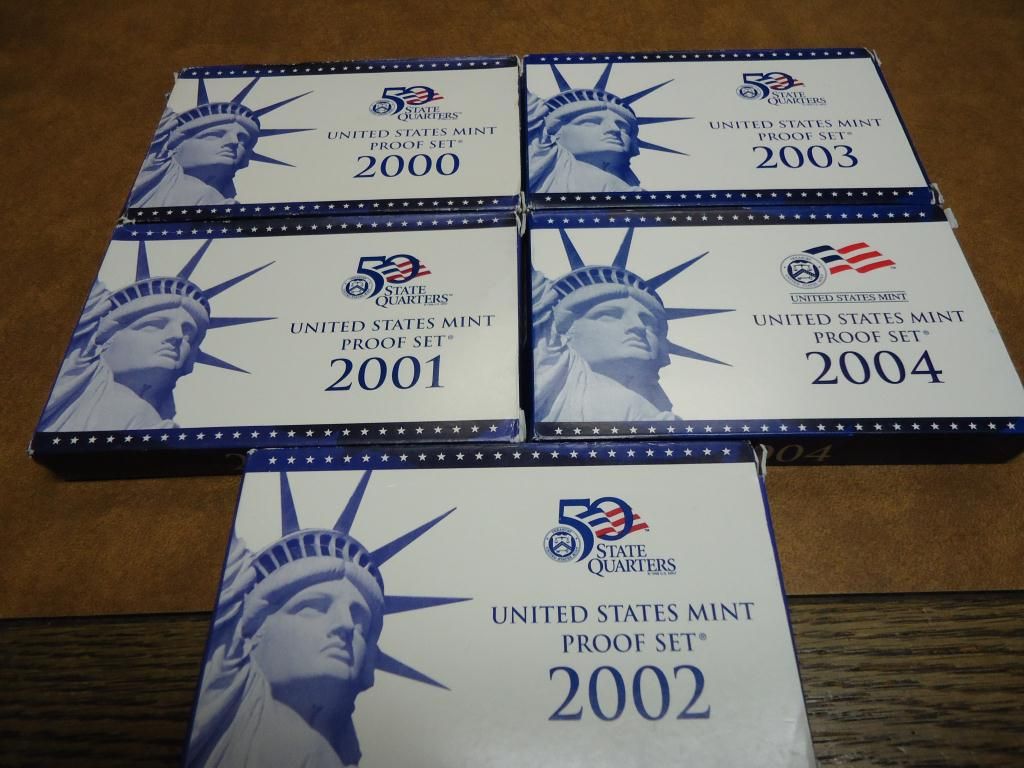 2000,2001,02,03 & 04 US PROOF SETS (WITH BOXES)