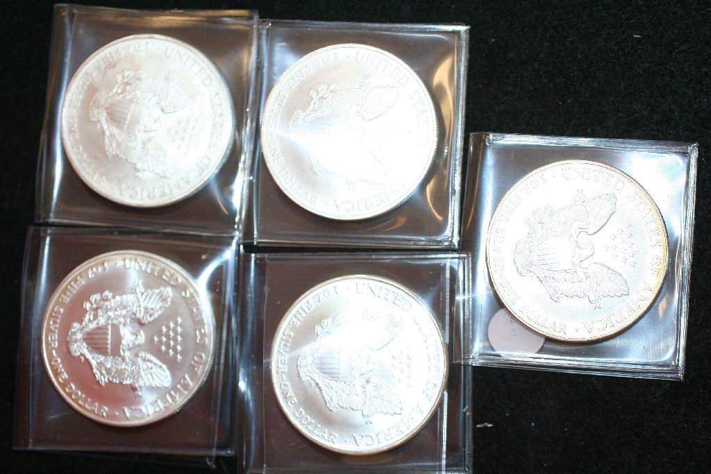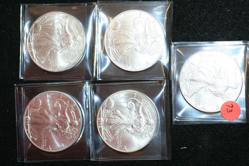 2000, 2001, 2002, 2003 & 2004 Silver Eagle $1, Lot of 5