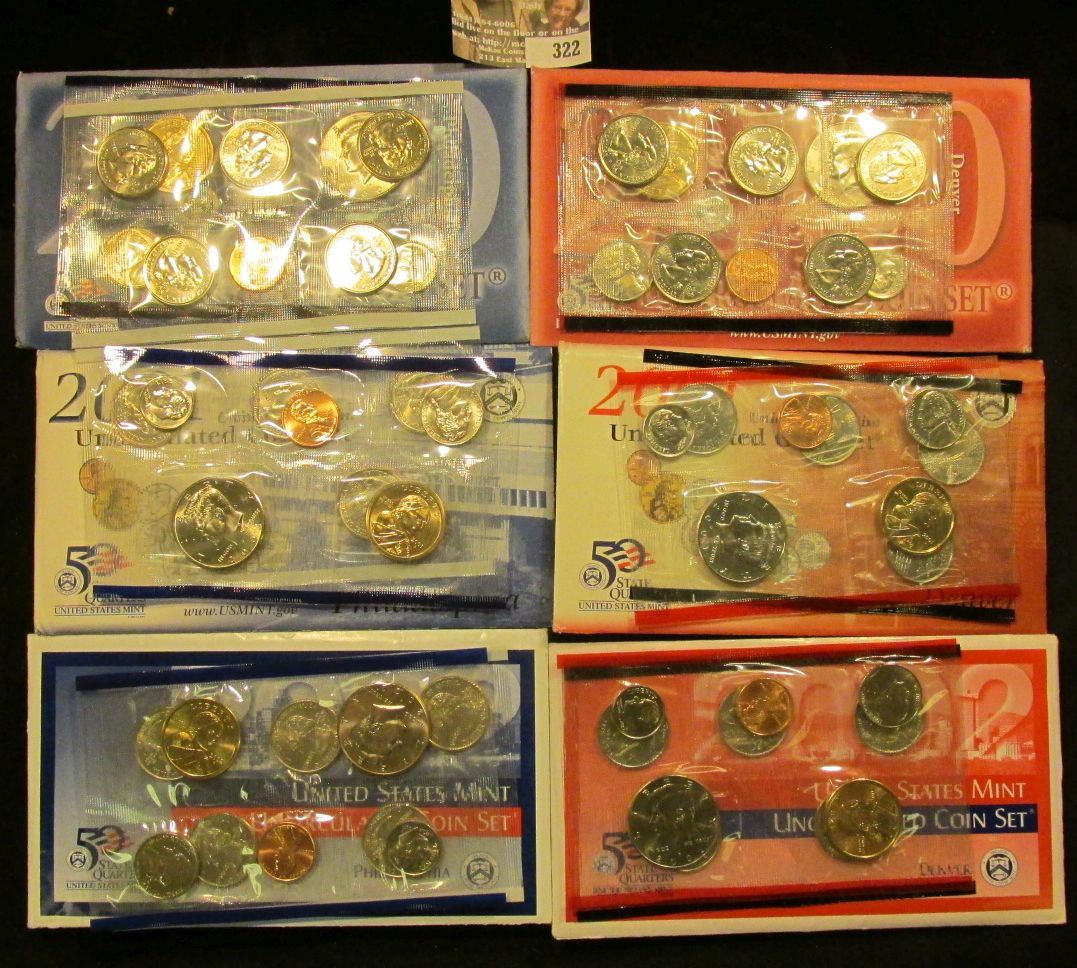 2000, 2001, & 2002 P & D U.S. Mint Sets. All original as issued. CDN bid is $18.00