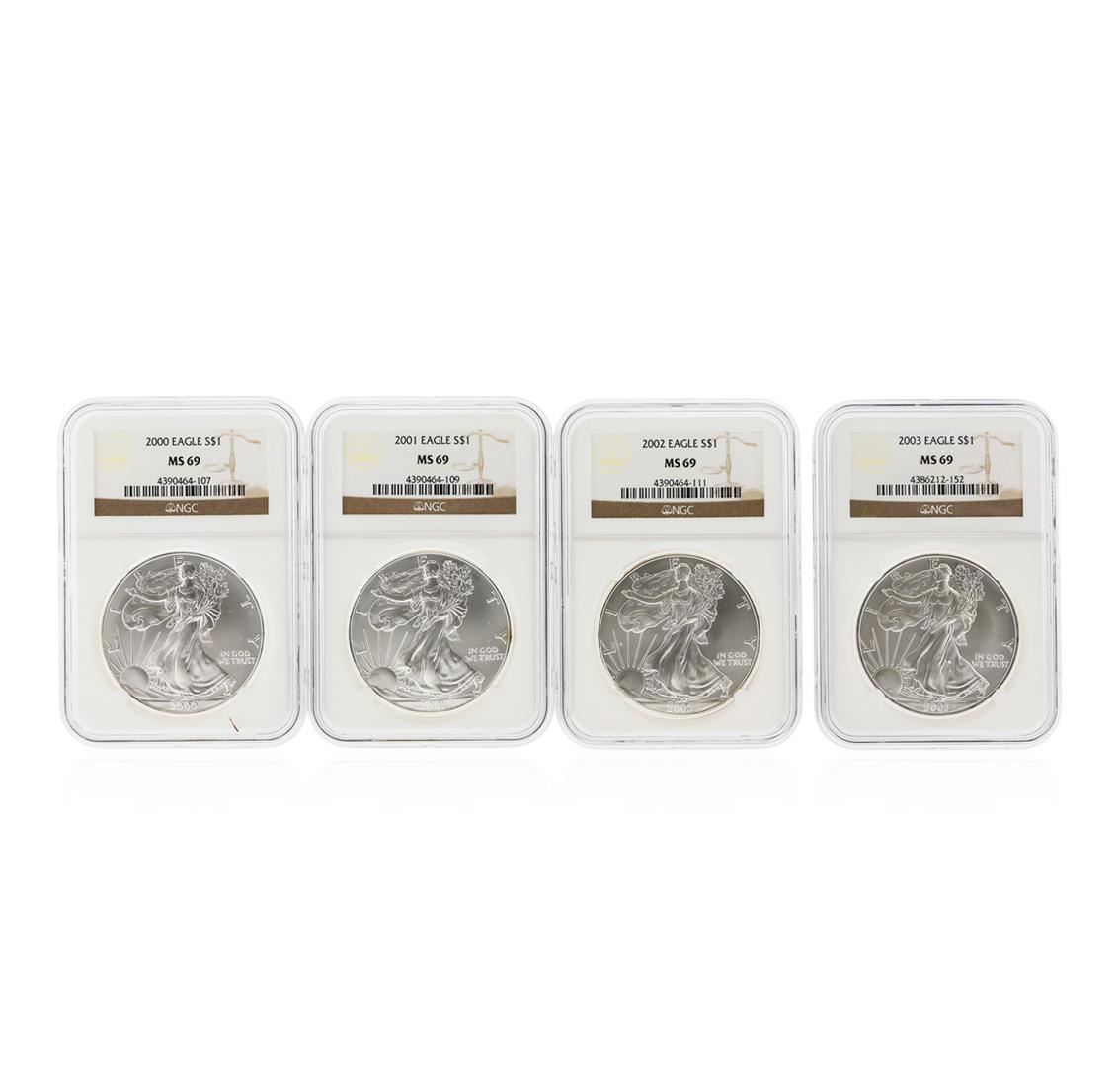One 2000-2003 $1 American Silver Eagle Coin Set NGC MS69. NGC Certified.
