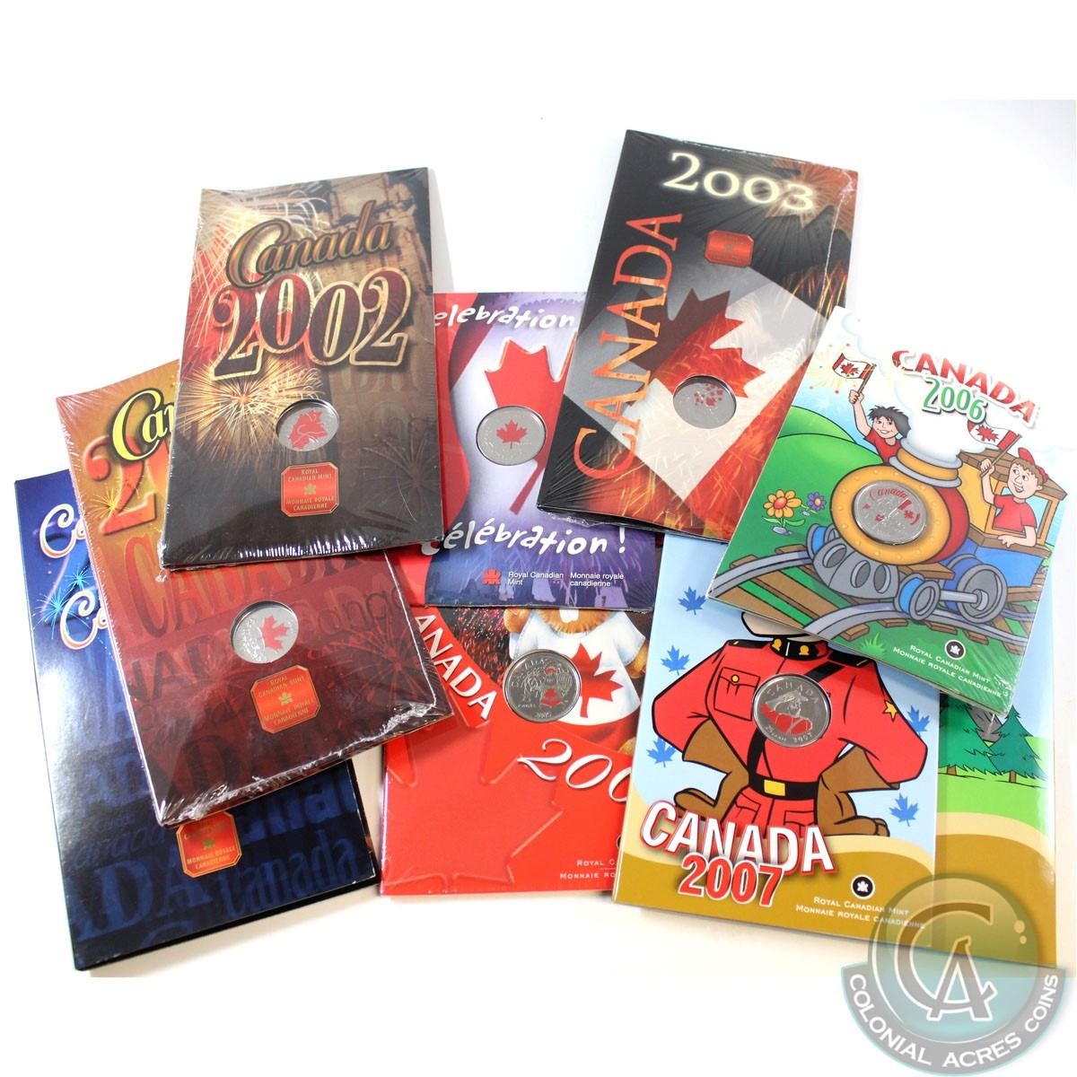2000-2007 Coloured Canada Day 25-cent Collection. You will receive one of each date released between 2000 and 2007. 8pcs