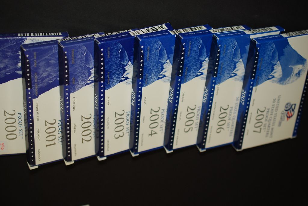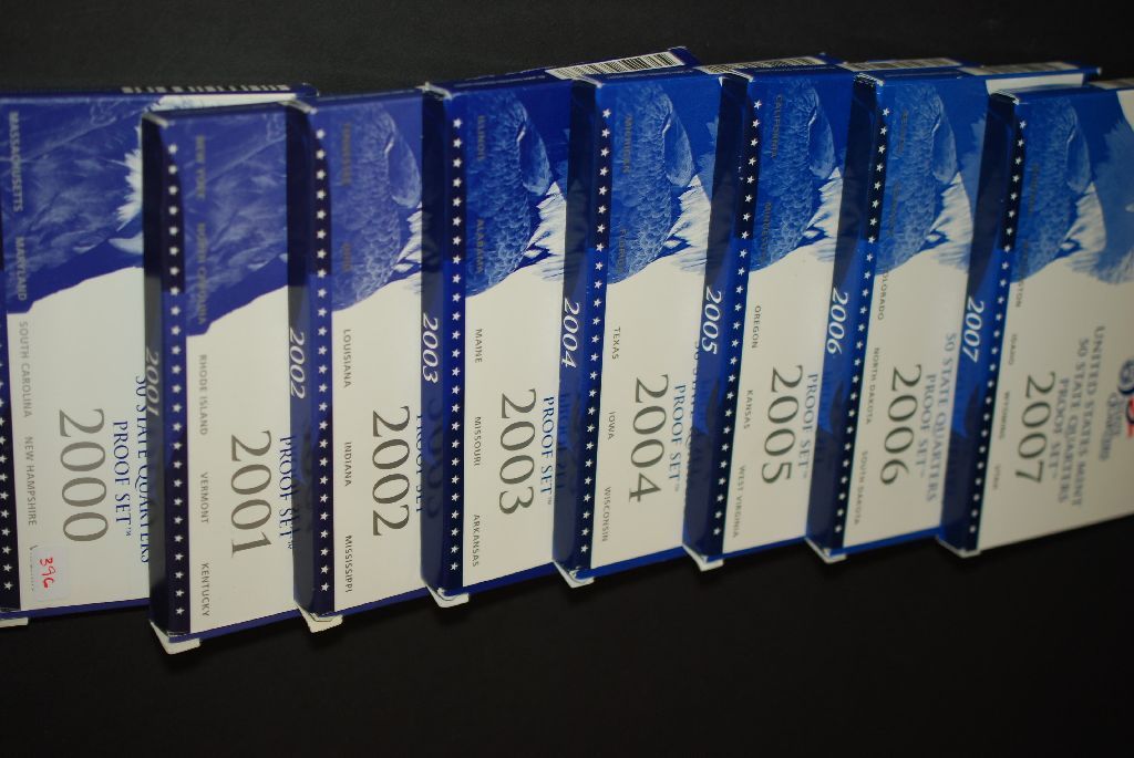 2000-2007-S US Mint State Quarter Proof Sets With COA Included; Lot of 8 Consecutive Years; EST. $40-50