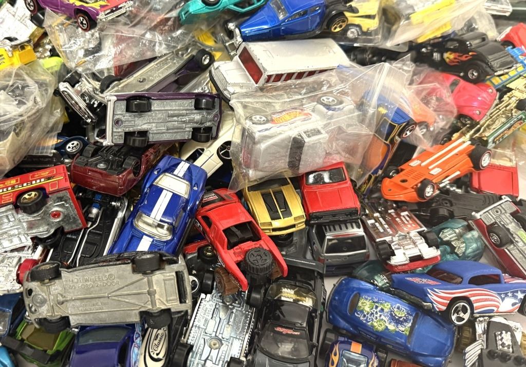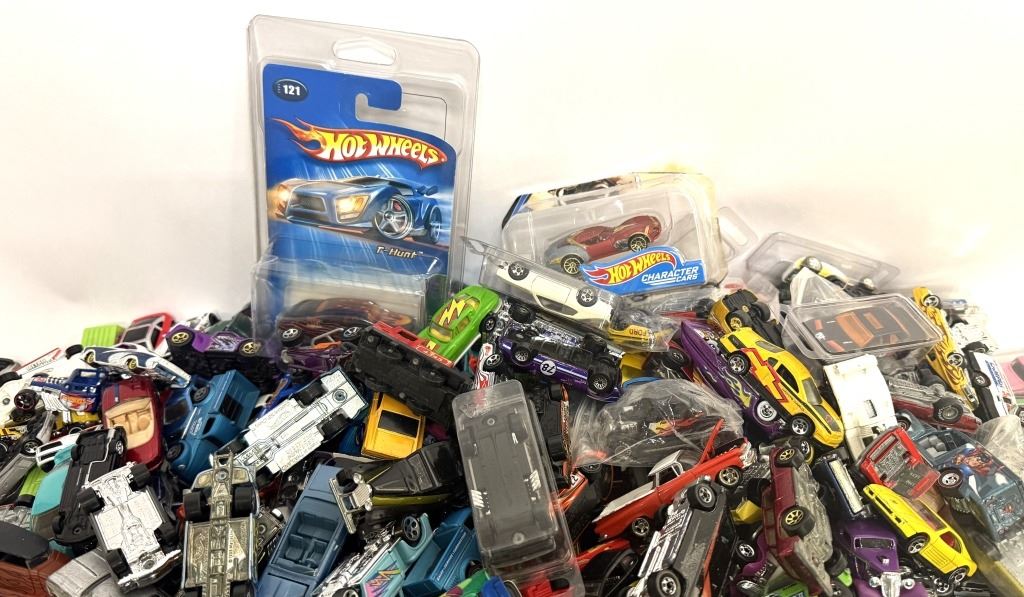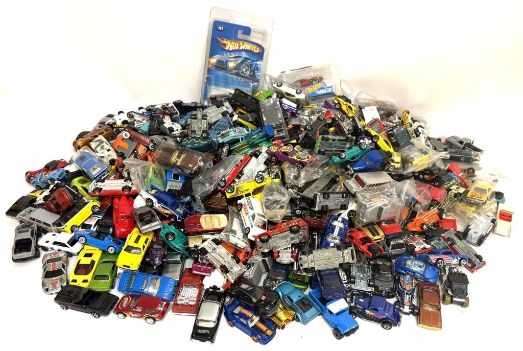 Item/Description: Large collection of Hot Wheels die-cast toy cars from 2000-2023. Includes packaged 2005 10th year anniversary Treasure Hunt (T-Hunts) Purple Passion car with flames, and a Hot Wheels DC Character Car of the character Wonder Woman.