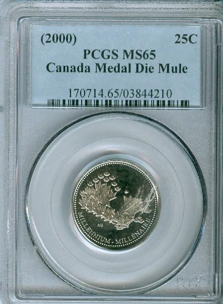 2000 25¢ Canada Day Millenium Mule PCGS MS65.