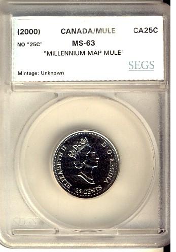 2000 25¢ Millennium Mule SEGS MS63.  Pittman example.