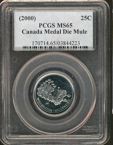 2000 25¢ PCGS MS65 Medal die MULE, mirror like fields.