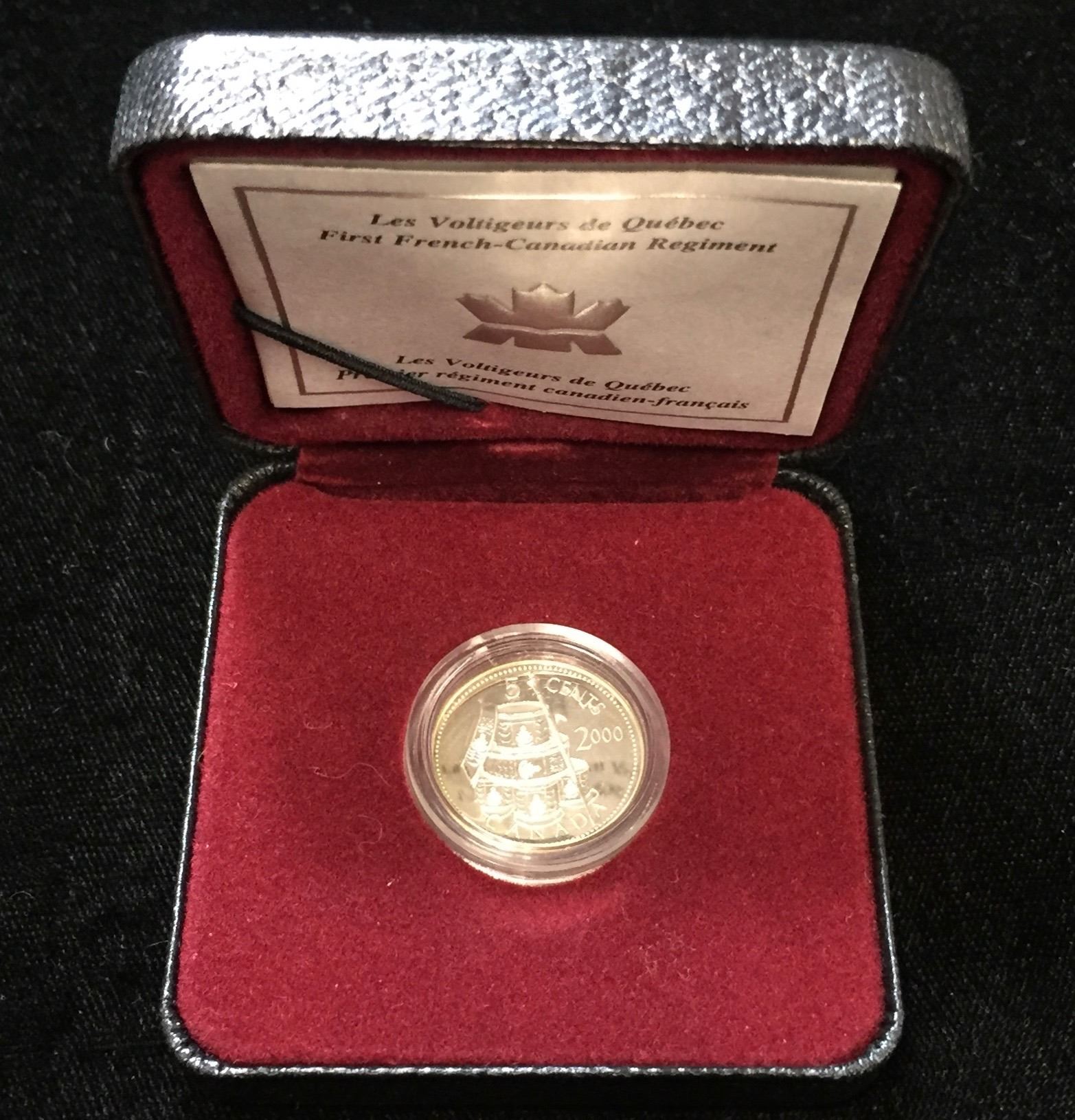 Lot 40; Sterling Silver .925 2000 5-Cent Proof Silver Les Voltigeurs de Quebec, Proof Finish, Includes COA and RCM Packing