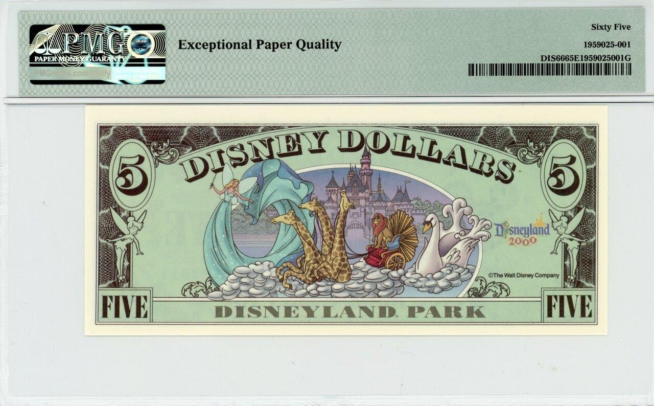 One 2000 $5 Goofy Millennium Disney Dollar PMG 65EPQ.