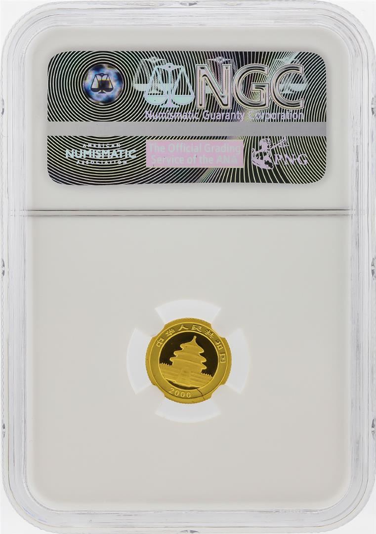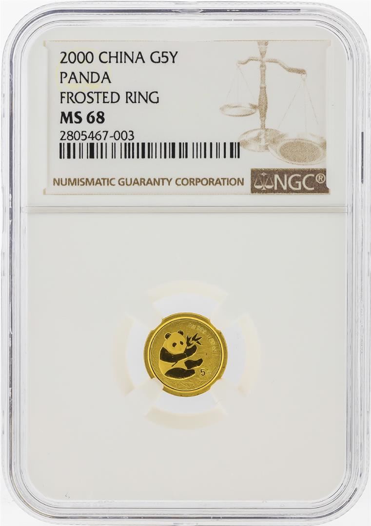 One 2000 5 Yuan China Gold Panda Frosted Ring Coin NGC MS68. NGC Certified.