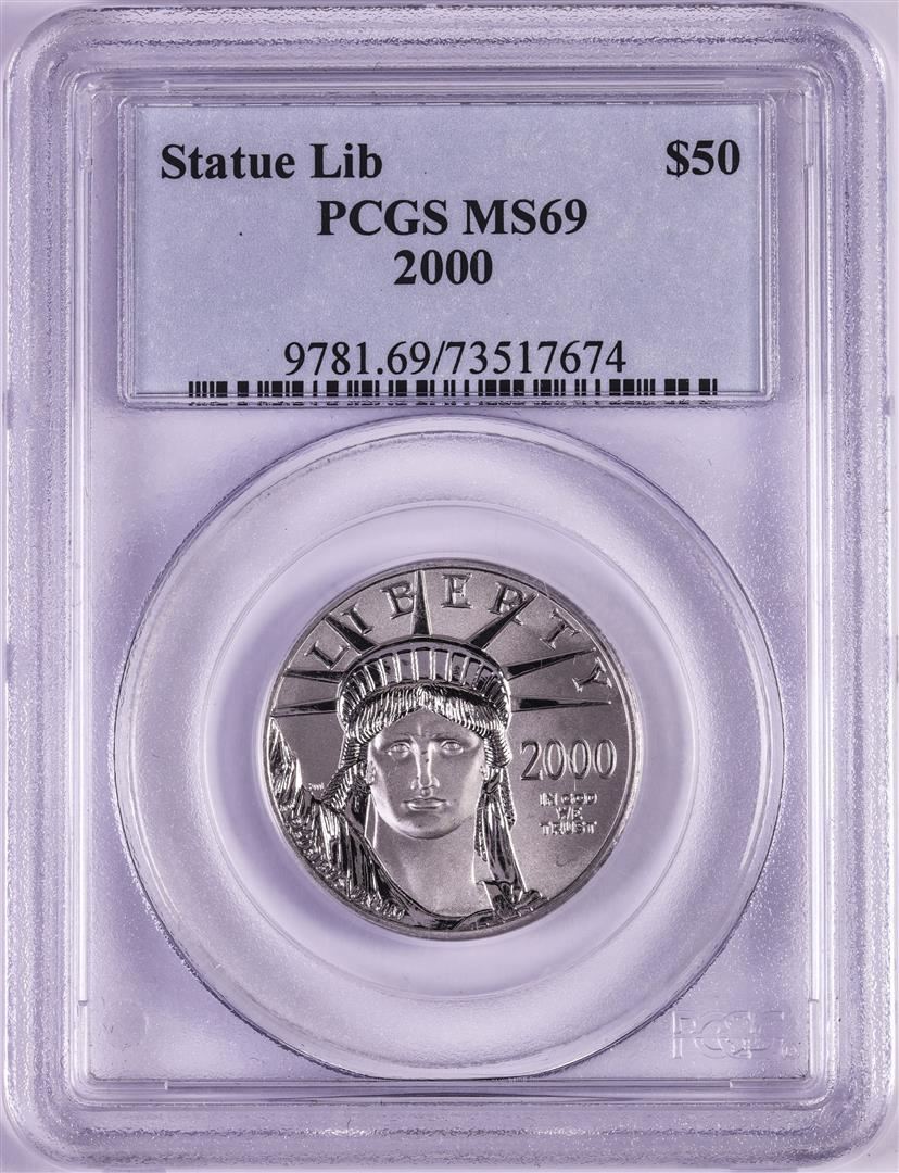 One 2000 $50 Platinum American Eagle Coin PCGS MS69. PCGS Graded.