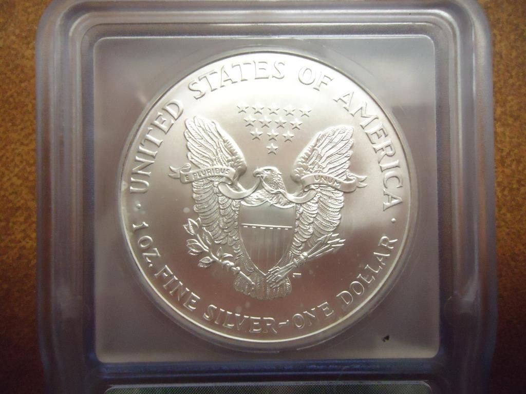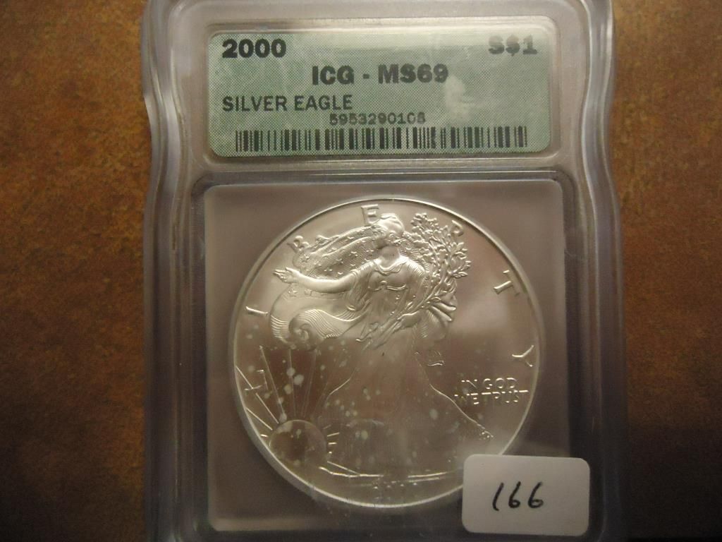 2000 AMERICAN SILVER EAGLE ICG MS69 SPOTS ON OBV.