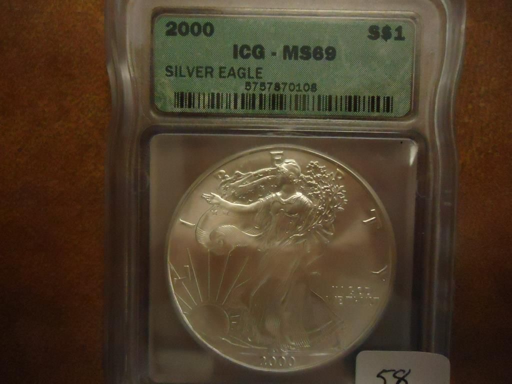 2000 AMERICAN SILVER EAGLE ICG MS69