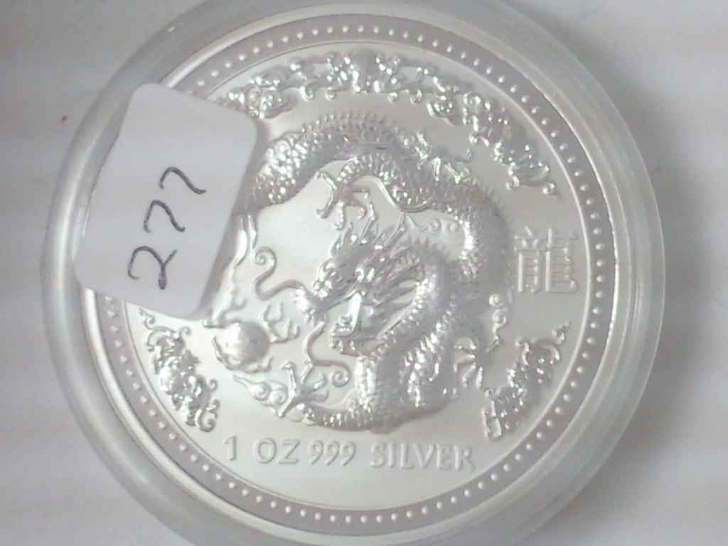 2000 AUSTRALIA $1 DRAGON 1 TROY OZ .999 SILVER