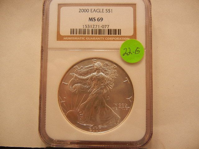 2000 American Silver Eagle, .999 Fine Silver, 1 Troy Oz., Graded by NGC MS69