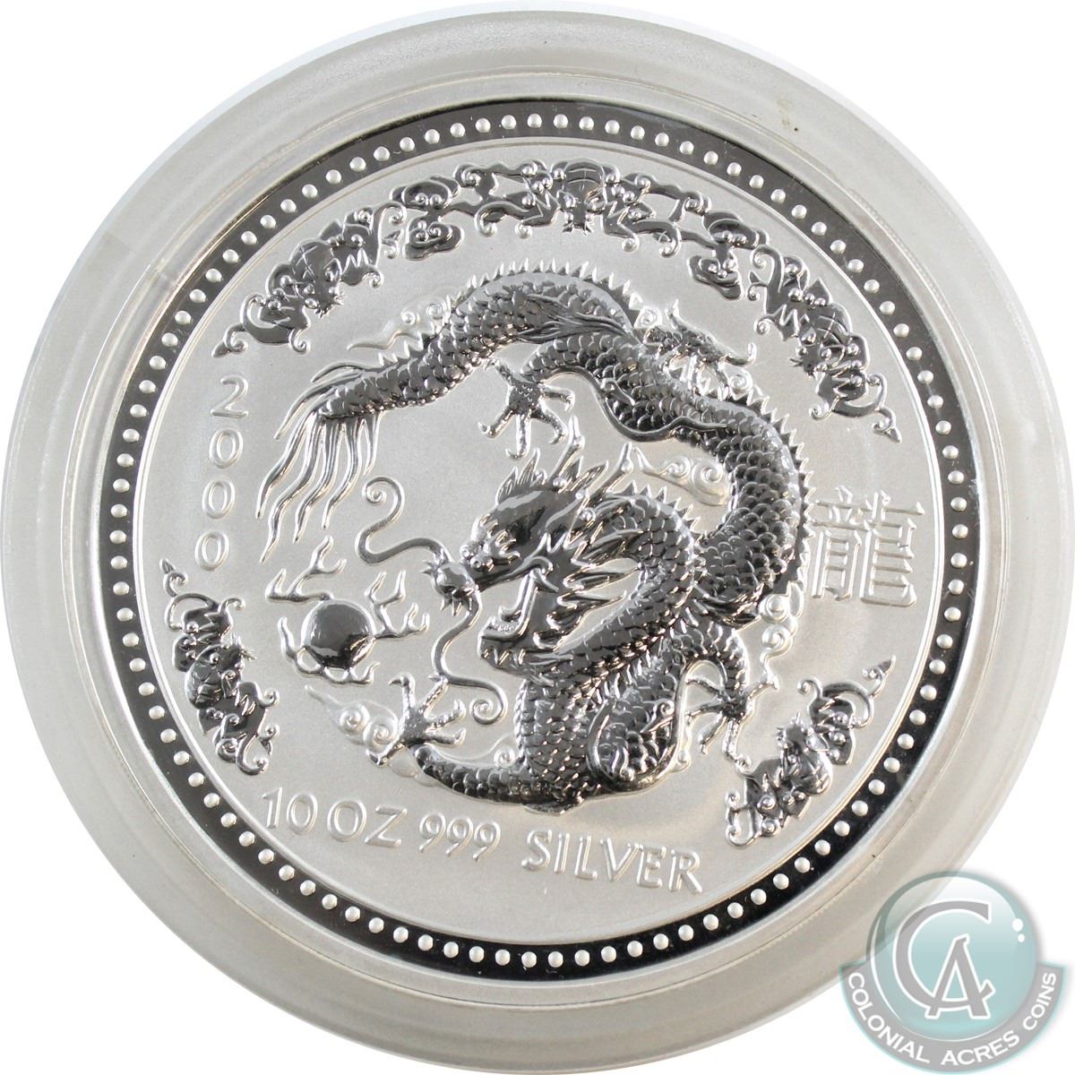 2000 Australia 10 oz .999 Fine Silver Year of the Dragon Silver Coin (TAX Exempt)-capsule does not fit coin properly and capsule is scuffed/cracked