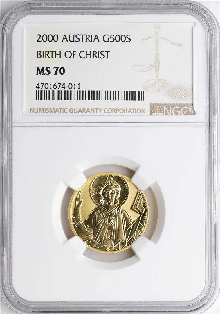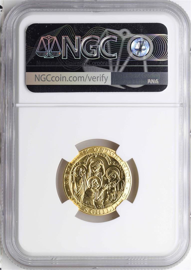 One 2000 Austria 500 Schillings Birth of Christ Gold Coin NGC MS70. NGC Certified.