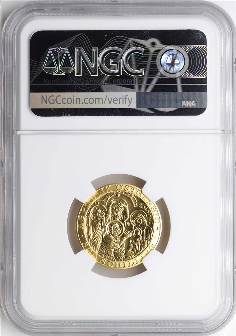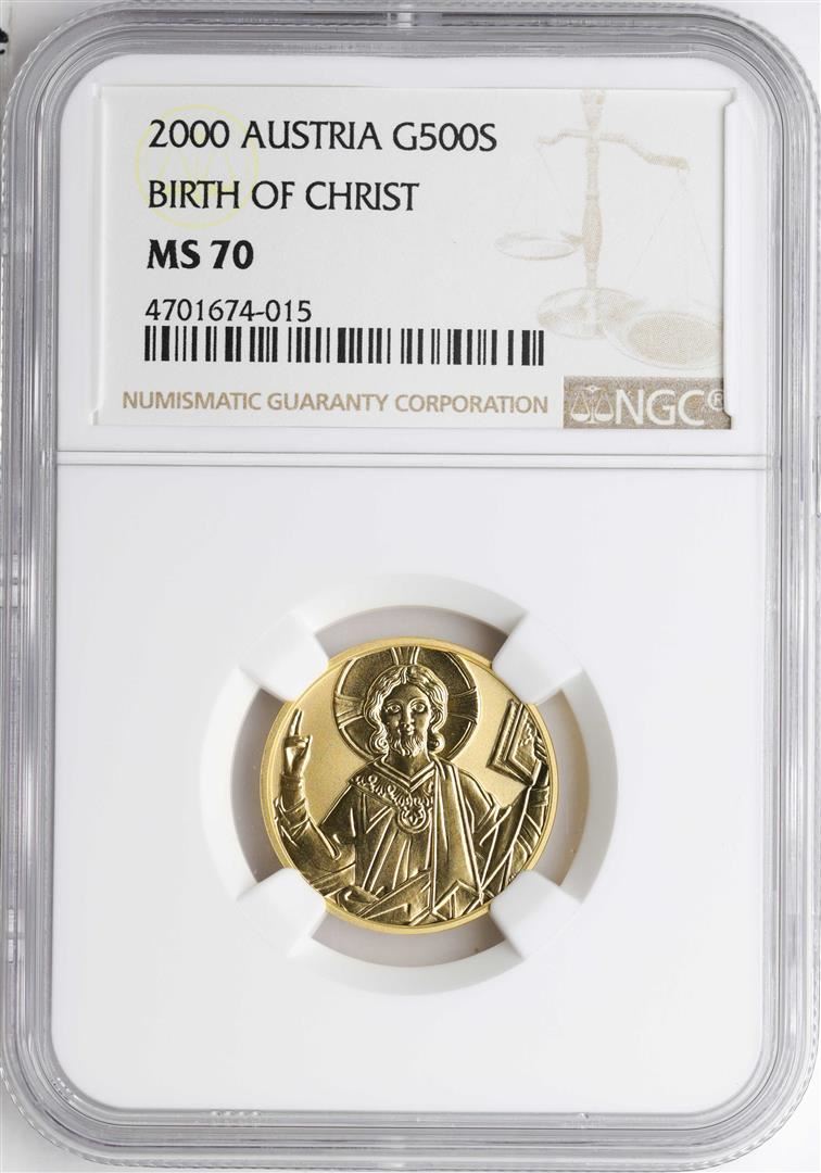 One 2000 Austria 500 Schillings Birth of Christ Gold Coin NGC MS70. NGC Certified.