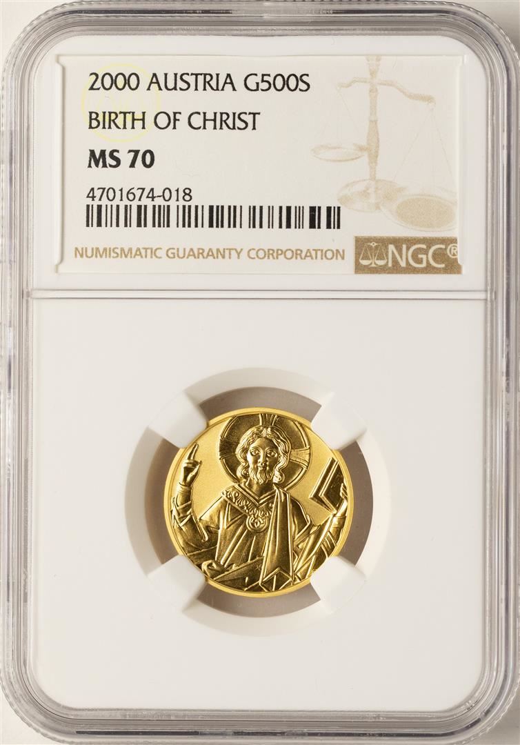 One 2000 Austria 500 Schillings Gold Coin NGC MS70. NGC Certified.