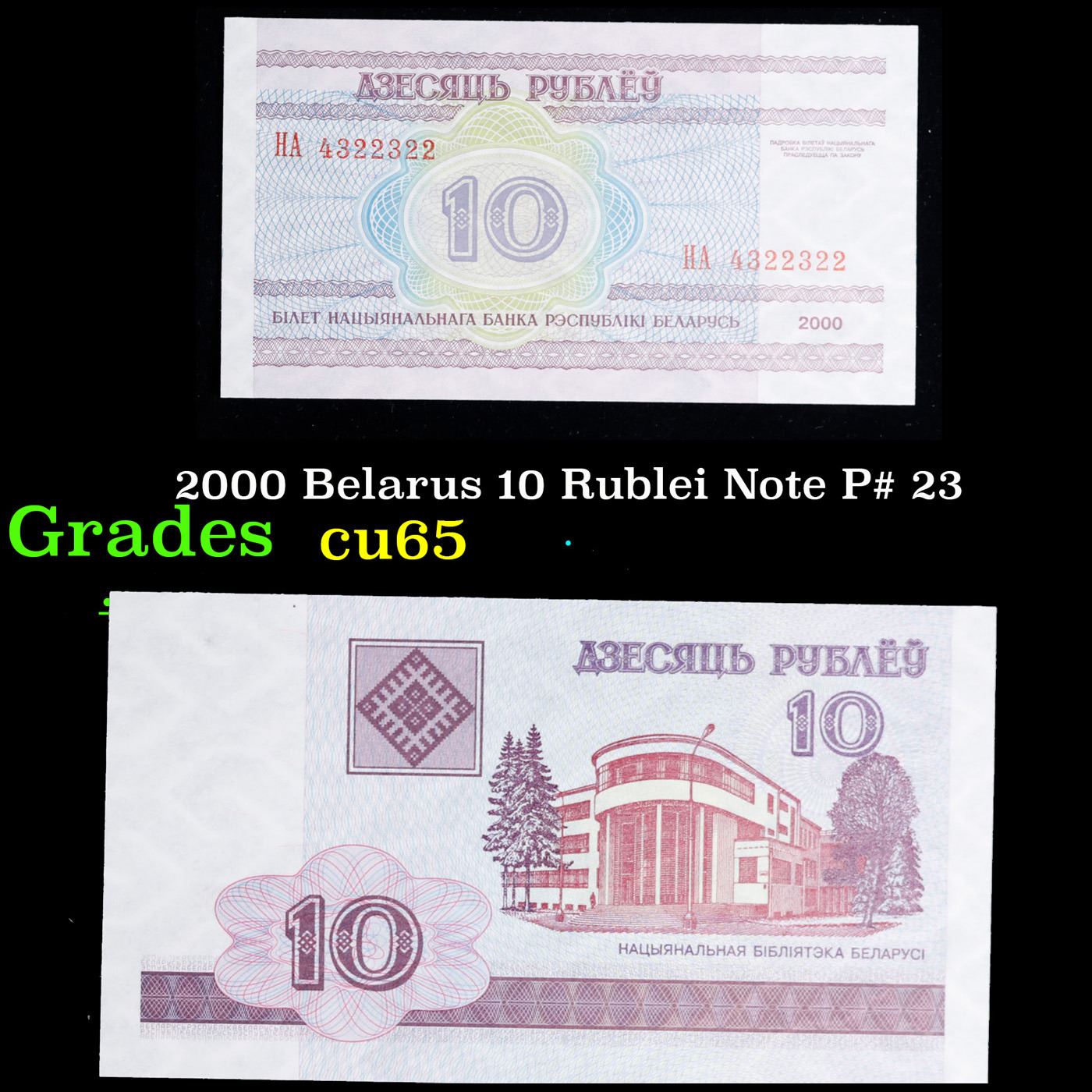 2000 Belarus 10 Rublei Note P# 23 Grades Gem CU.